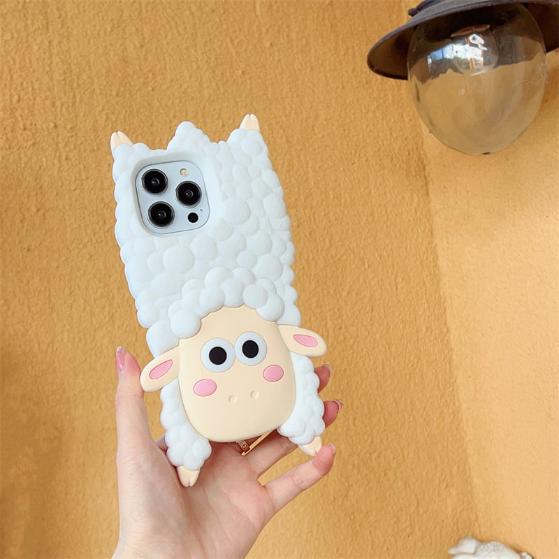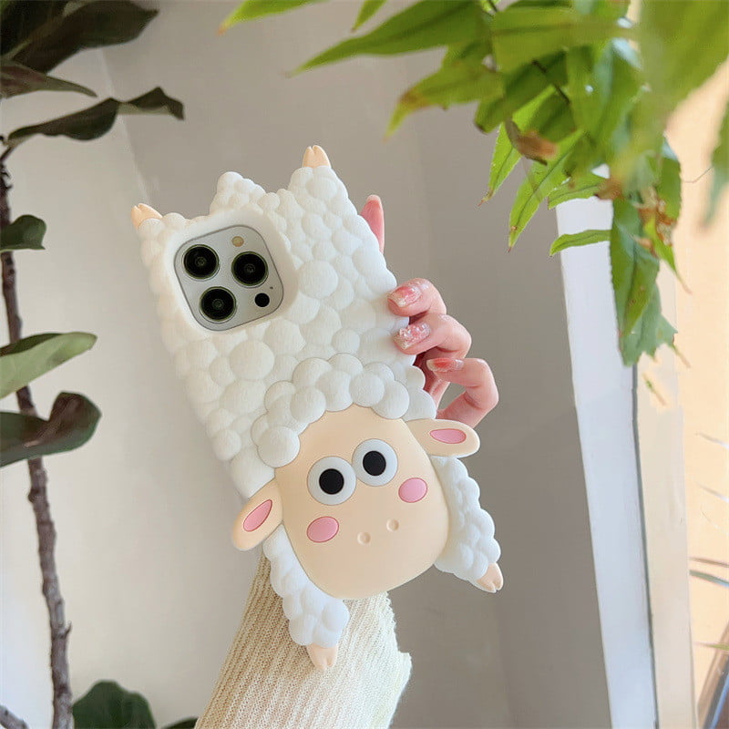 The back of the phone cover showcases a detailed 3D design of a white sheep. The sheep is depicted with its fluffy white fur, sweet face, and endearing expression, creating a lovable and eye-catching look for your iPhone.